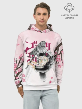 Худи мужской база хлопок / Чёрный клевер сакура Аста