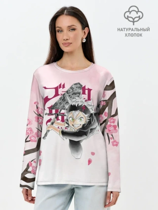 Лонгслив женский. Хлопок / Чёрный клевер сакура Аста