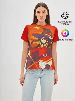 Женская базовая футболка / KonoSuba. Мегумин с посохом