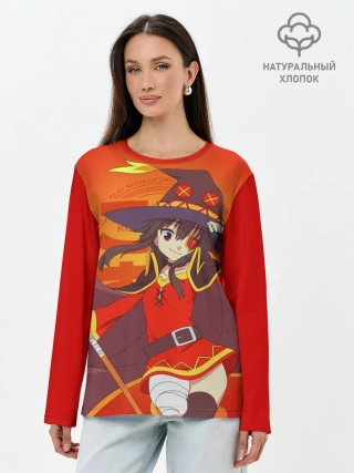 Лонгслив женский. Хлопок / KonoSuba. Мегумин с посохом