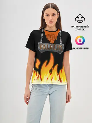 Женская футболка оверсайз / VALHEIM косплей с бородой