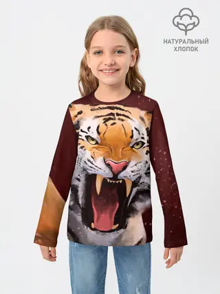 Детский лонгслив / Тигр красавчик сердится