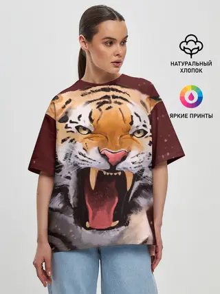 Женская футболка оверсайз / Тигр красавчик сердится