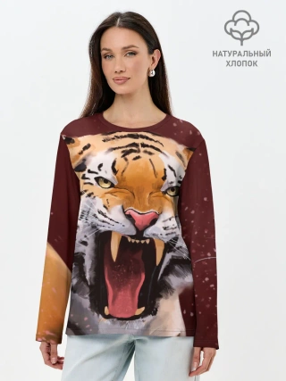 Лонгслив женский. Хлопок / Тигр красавчик сердится