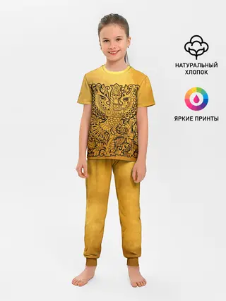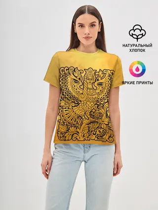 Мужская футболка оверсайз / Волчий отпечаток золотом | Символ Велеса