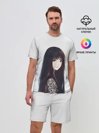 Мужская пижама с брюками / Красивая аниме девушка