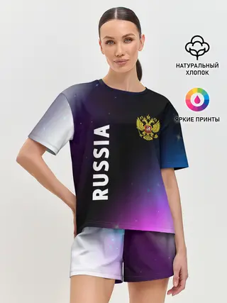Женская футболка оверсайз / RUSSIA / РОССИЯ