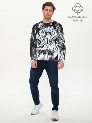 Мужской лонгслив базовый / Черно-белый узор. Маки.
