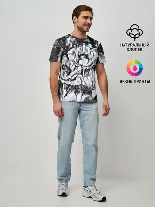 Мужская базовая футболка / Черно-белый узор. Маки.