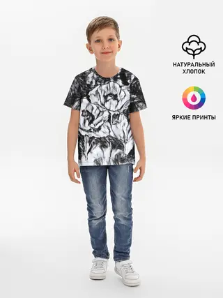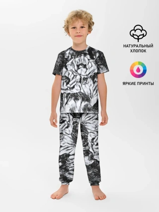 Детская пижама с брюками / Черно-белый узор. Маки.