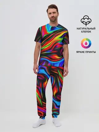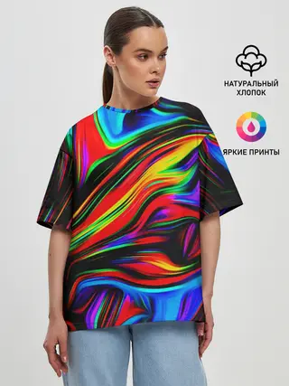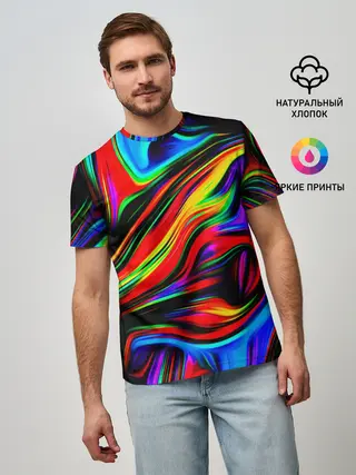Мужская футболка оверсайз / Разноцветные разводы красок