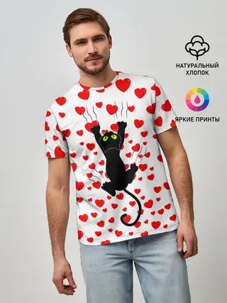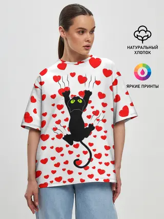 Мужская футболка оверсайз / Хэллоуинская кошка