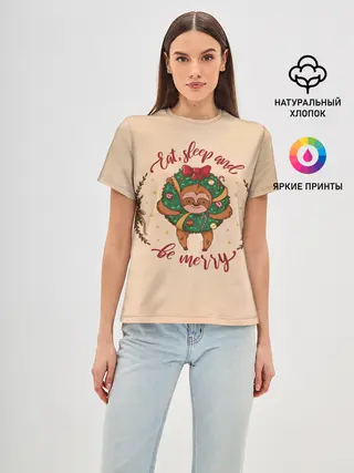 Женская базовая футболка / Ленивец Новый год
