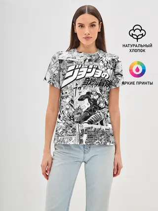Лонгслив женский. Хлопок / Серый комикс jojo