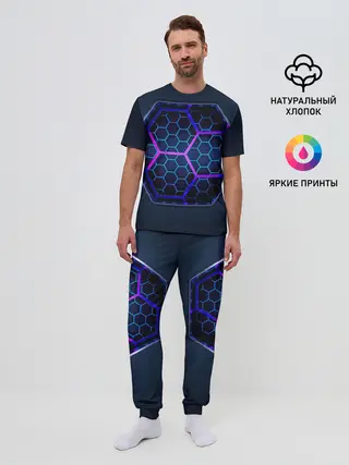 Мужская пижама с брюками / Цветные соты 3D