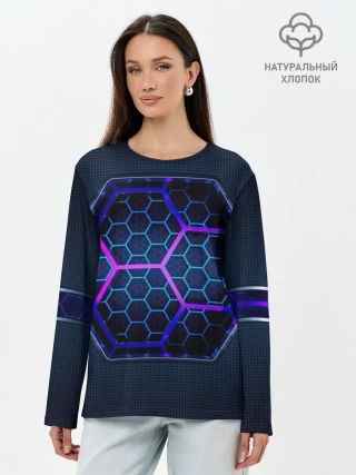 Лонгслив женский. Хлопок / Цветные соты 3D