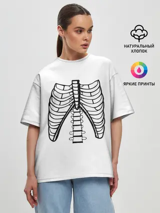 Женская футболка оверсайз / ребра скелета
