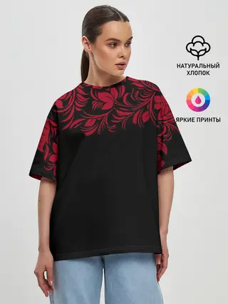 Мужская футболка оверсайз / Тропические цветы и узоры