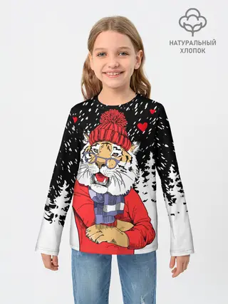 Детский лонгслив / Тигр в красном