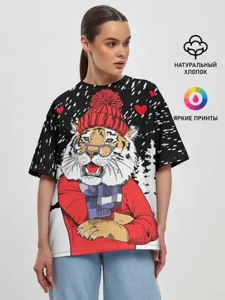 Женская футболка оверсайз / Тигр в красном