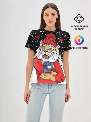 Женская базовая футболка / Тигр в красном