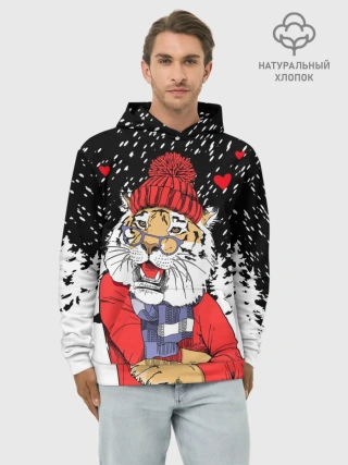Худи мужской база хлопок / Тигр в красном