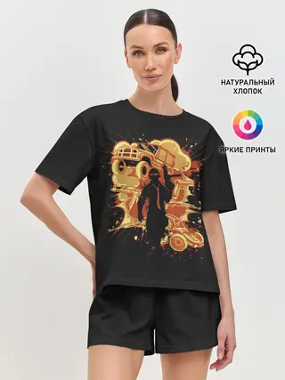 Мужская футболка оверсайз / PUBG RETRO NEON / ПАБГ НЕОН