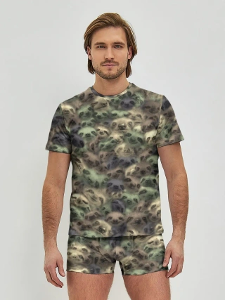 Мужские трусы с футболкой / Камуфляж с ленивцами