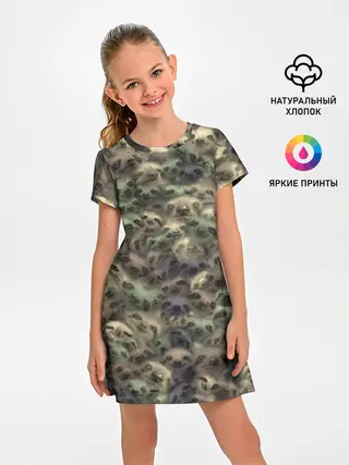 Детское платье / Камуфляж с ленивцами
