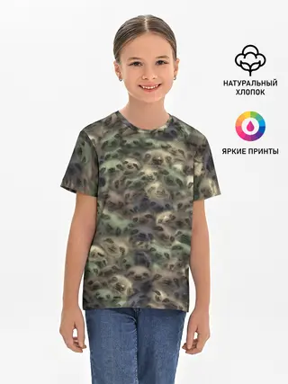 Детская базовая футболка / Камуфляж с ленивцами