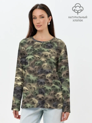 Лонгслив женский. Хлопок / Камуфляж с ленивцами