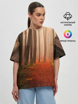 Женская футболка оверсайз / Осенний лес