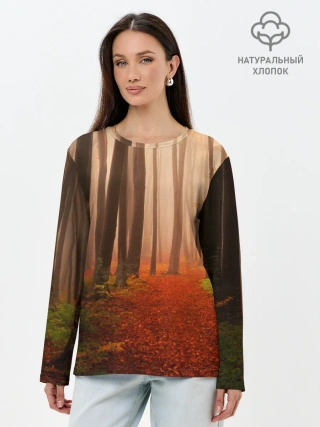 Лонгслив женский. Хлопок / Осенний лес