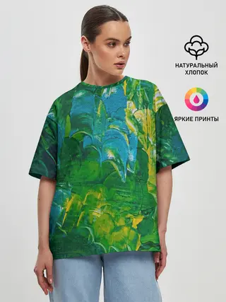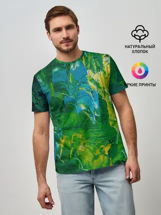Мужская футболка оверсайз / Разноцветные разводы красок