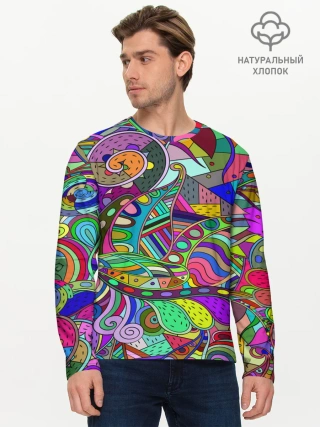 Мужской лонгслив базовый / Дудлы узор разноцветный хиппи