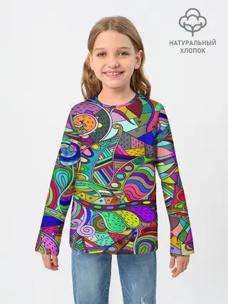 Детский лонгслив / Дудлы узор разноцветный хиппи
