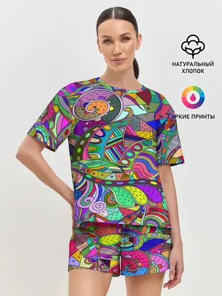 Женская пижама с шортами / Дудлы узор разноцветный хиппи
