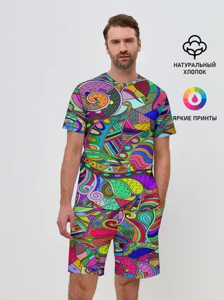 Мужской костюм с шортами / Дудлы узор разноцветный хиппи