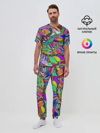 Мужская пижама с брюками / Дудлы узор разноцветный хиппи