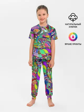 Детская пижама с брюками / Дудлы узор разноцветный хиппи
