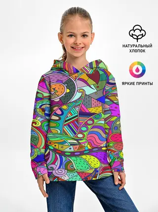 Детское худи / Дудлы узор разноцветный хиппи