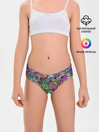 Трусы для девочек / Дудлы узор разноцветный хиппи