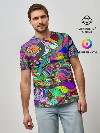 Мужская базовая футболка / Дудлы узор разноцветный хиппи