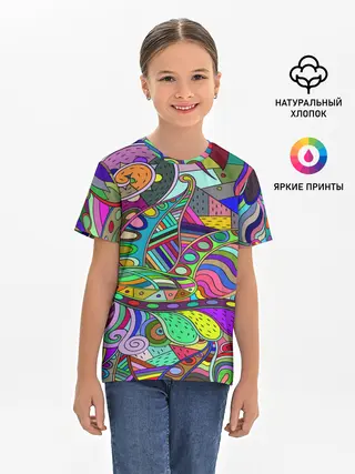 Детская базовая футболка / Дудлы узор разноцветный хиппи