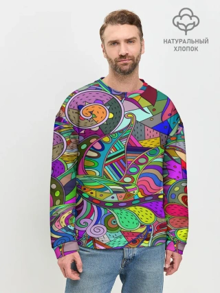Мужской свитшот базовый / Дудлы узор разноцветный хиппи