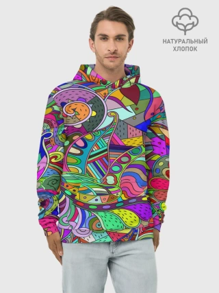 Худи мужской база хлопок / Дудлы узор разноцветный хиппи
