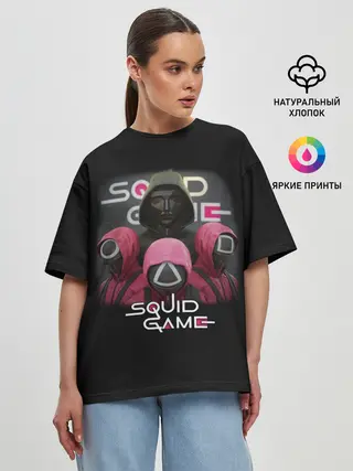 Женская футболка оверсайз / ИГРА В КАЛЬМАРА | SQUID GAME СТРАЖИ