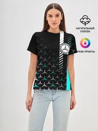 Женская базовая футболка / МЕРСЕДЕС / AQUA BLACK GRADIENT