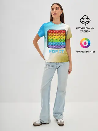 Мужская футболка оверсайз / POP it вертикальная надпись
