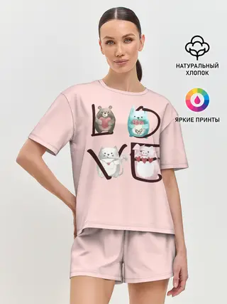 Женская пижама с шортами / LOVE зверушки